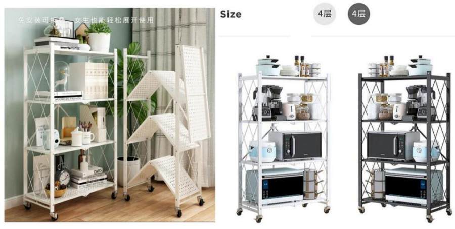 随着烹饪方式的丰富,厨房的电器设备逐渐增多,如微波炉、烤箱、料理机等,想把这些电器通通收纳起来,四层可折叠置物架可助你一臂之力!四层大容量设计,非常适合收纳,也节省了厨房空间。